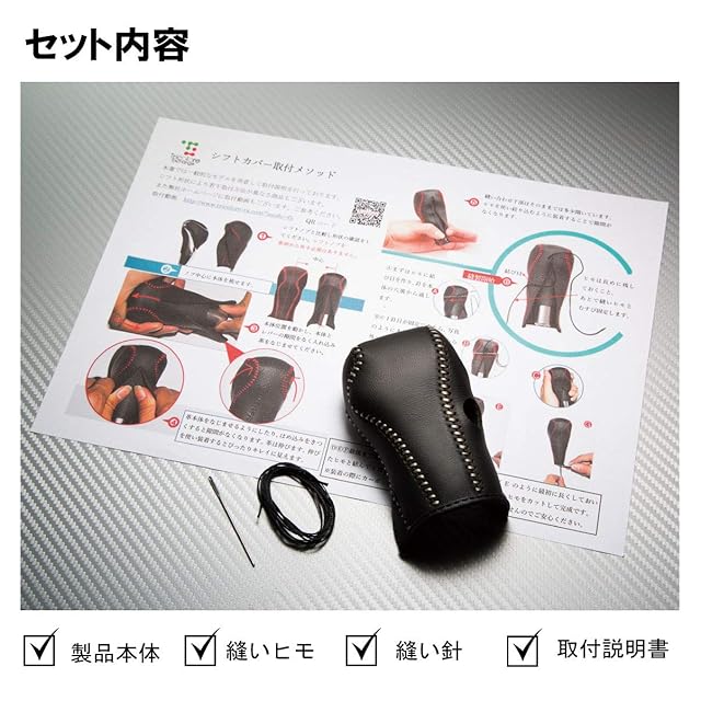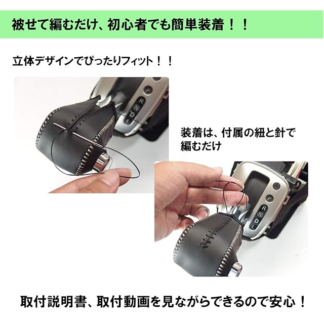 完全車種別専用設計、ウレタンとは違う手触り。張替仕様で純正然とした仕上がり。純正シフトレバーの上から取り付けます。