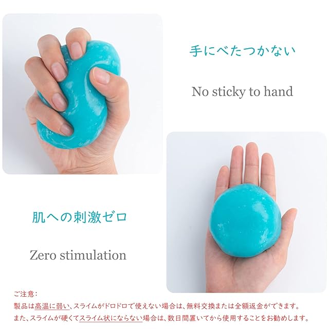 スライムクリーナーはエコ素材で作られ、手にべたつかず、ほのかな香り(ラベンダー)がします。掃除したいところにクリーナースライムをピタッとくっつけてゆっくり剥がすと、ホコリやゴミが楽に取られます 掃除用スライムは柔らかくて、手入れにくいキーボードの隙間や部屋の隅などに入り込み、取りにくいごみとほこりを簡単に取っちゃいます。こちらの粘着クリーナーの粘着力がなくなるまで何度も利用でき、コスパが高いジェルクリーナーでございます キーボードクリーナーとしてよく使用されています。PC キーボード 掃除用でよく知られていますが、車内清掃、リモコン、電話、カメラ、電卓、パソコン 掃除などにもお手軽に清掃できます。スライム 掃除用スライムは消しカス、ペットの毛、死角にたまるホコリのお掃除にも大活躍するキーボード クリーナーでございます 【使用上のご注意】①製品は高温に弱い、涼しい場所に置いてください;②粘着性を保つため、水や油から遠ざけてください;③硬くてちぎれやすい場合は、数日間置いてから利用してください 【カスタマーサービス】ご使用中にスライムがドロドロで使えない、製品不備、漏れたなどの場合は、いつでもこちらにご連絡くださいませ。お客様のお困りを解決するまでしっかりと対応致します