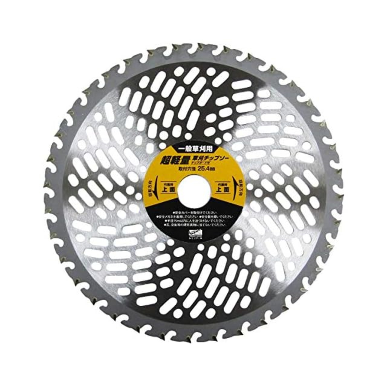 当社オリジナル「超軽量穴あき台金」に改良チップガードで補強したLIHGT & TOUGHな草刈チップソーです。