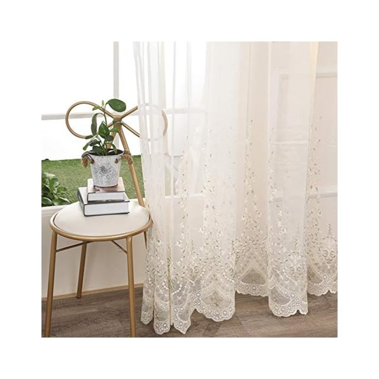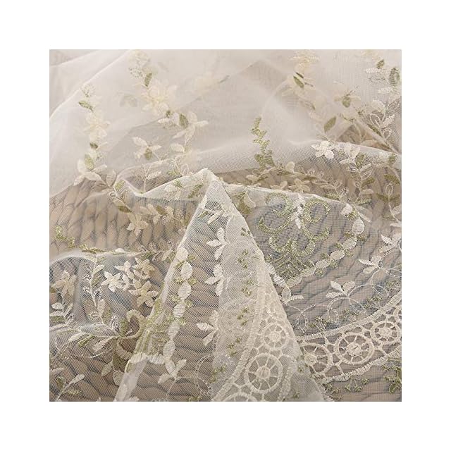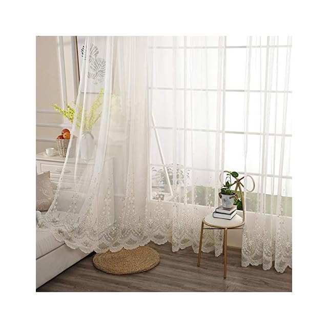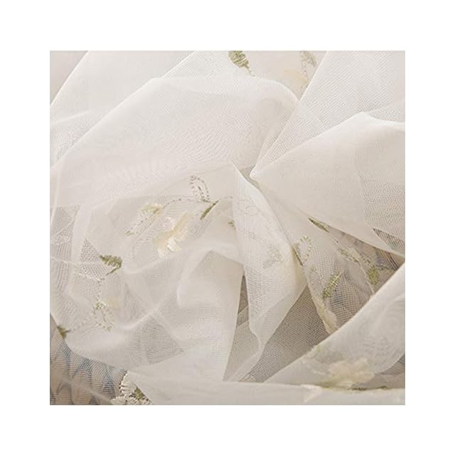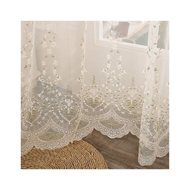 pureaqu 田舎風美しい レースカーテン 刺繍 小さな花柄葉柄 薄手 薄いカーテン 軽い 良好な光透過性 間仕切り子供の女の子の部屋 カーテンチュール 人気 窓ガーゼパネル 小窓 寝室 リビングルーム 取り外し簡単 1組2枚入り 幅100cm×丈178cm