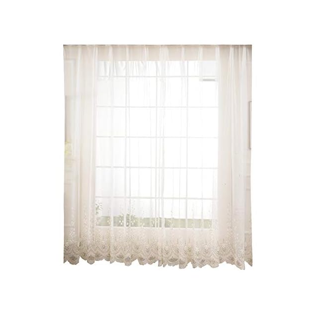商品名:pureaqu 田舎風美しい レースカーテン 刺繍 小さな花柄葉柄 薄手 薄いカーテン 軽い 良好な光透過性 間仕切り子供の女の子の部屋 カーテンチュール 人気 窓ガーゼパネル 小窓 寝室 リビングルーム 取り外し簡単 1組2枚入り 幅100cm×丈178cm