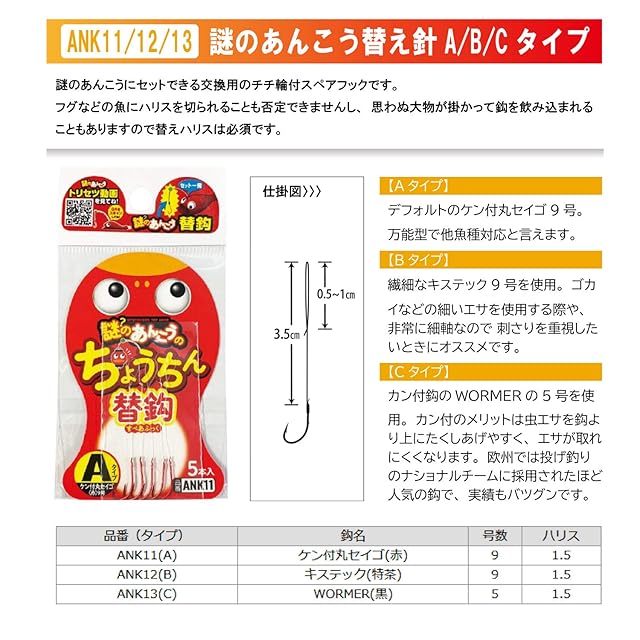 商品名:ささめ針(Sasame) 謎のあんこう 替え針Aタイプ ケン付丸セイゴ(赤) 9号