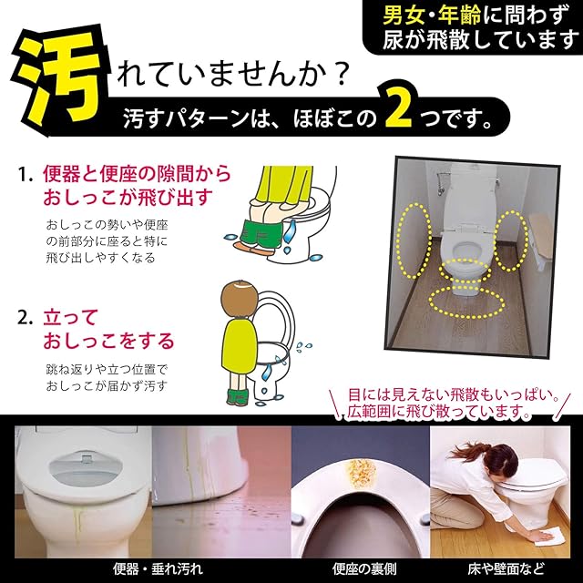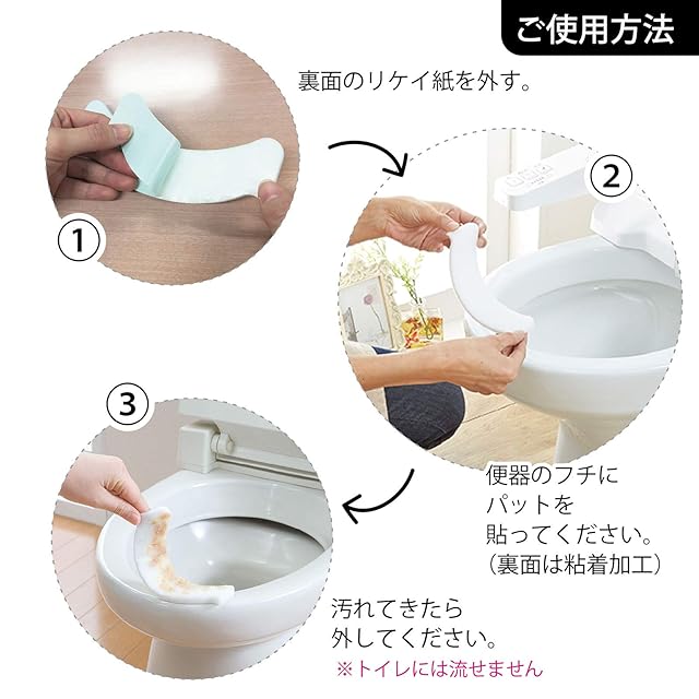 便器に商品を貼ることで、面倒な便器掃除、床ふきの手間を減らします。