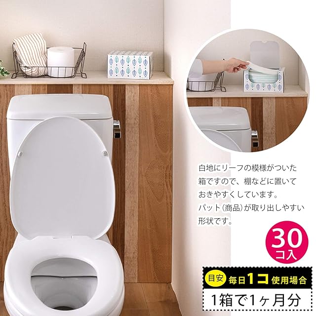 トイレの汚れ防止パット30個入り。おしっこの飛び散りや垂れを防ぎ、床を汚しません。