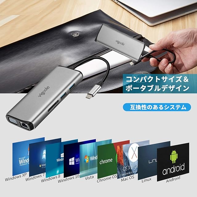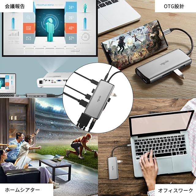 【コンパクト形状で高い柔軟性】 VIGOOLE USBCハブはトリプルディスプレイに対応し、11ポートすべてが同時に動作します。 単純なプラグアンドプレイ接続。 スリム、軽量、コンパクト、そしてマルチポートを備えたパワフルです。 スペースに限りがありますので、どこにでも置けます。 外出先でのプレゼンテーション、データ収集、設計プロジェクトなどのために、ハブをバッグに入れます。 これは、毎日の持ち運び、通勤、旅行に理想的なデバイスです。 あなたの生活をより便利にします。