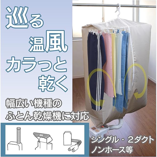 ⭐※周囲が210cm以内の角ハンガーや8連ハンガー等に本品を被せて、お手持ちの布団乾燥機をセットして使用します。