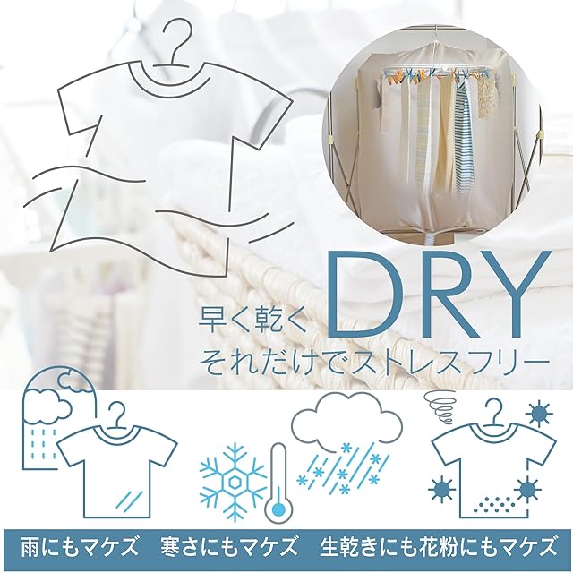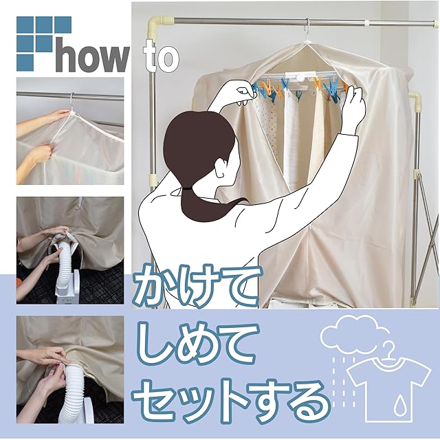 ⭐※周囲が210cm以内の角ハンガーや8連ハンガー等を2台並べた後、本品を被せてお手持ちの布団乾燥機をセットして使用します。
