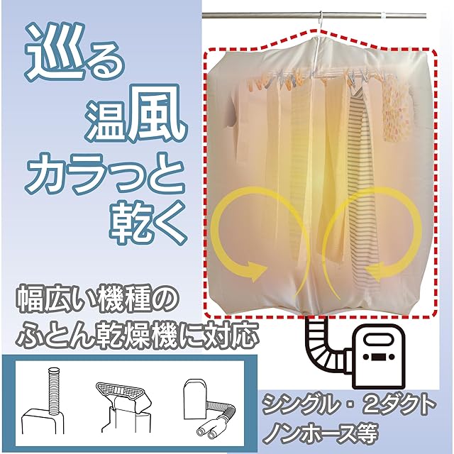 ⭐材質:ポリエステル、対応ふとん乾燥機:温風吹き出し口の周囲が70cm以内の機種、シングルホースタイプ、ノンホースタイプ、2ダクトタイプにも対応。