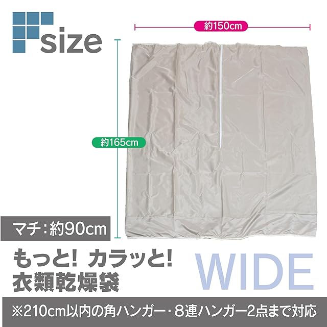 ファイン もっと! カラッと 衣類乾燥袋 ベージュ ワイド室内干し ビッグサイズ ふとん乾燥機対応 早く乾く (幅150×高さ165×マチ90cm)FIN-782MK