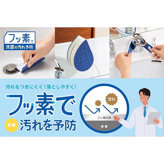フッ素で汚れを予防する 洗面洗いのシート型スポンジ