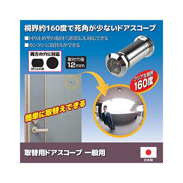 [対応取付穴径]12mm/[対応ドア厚]28~40mm/[視界]160度