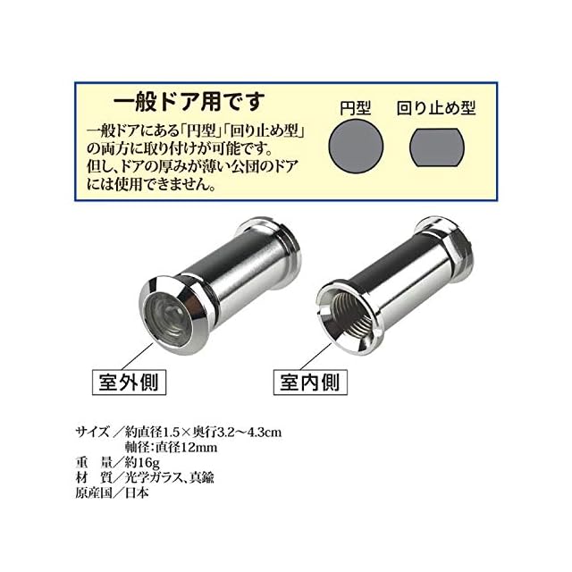 ドア取付穴形状が「回り止め型」にも対応する、一般ドア用の取り替え用ドアスコープ。