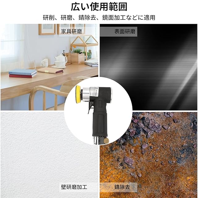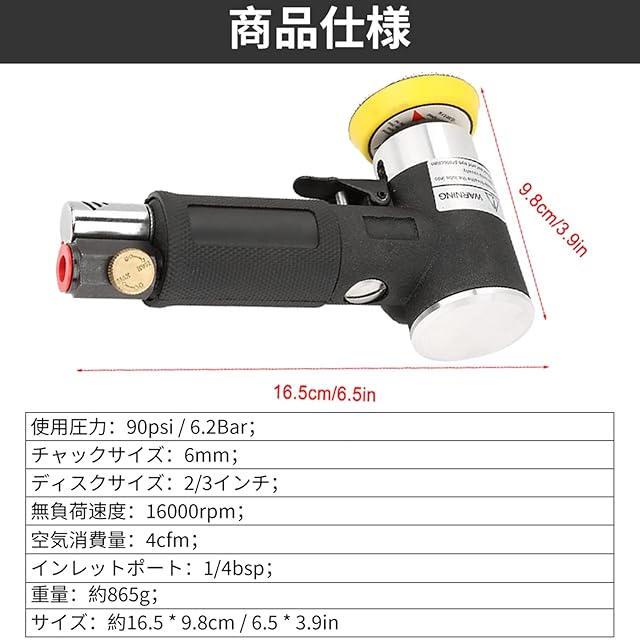商品名:エアアングルサンダー ミニ研磨機 ポリッシャー エアアングルサンダー 空気圧研磨工具 2インチ/3インチ 空気圧 高速 低空気消費 簡単操作 研削盤付き 1 / 4bsp空気口 16.5*9.8cm AT-1500