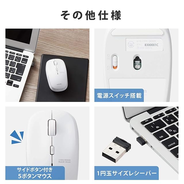 商品名:エレコム ワイヤレスマウス M-BL21DBSKWH 静音 抗菌 5ボタン 3段階ポインタ速度可変 ホワイト