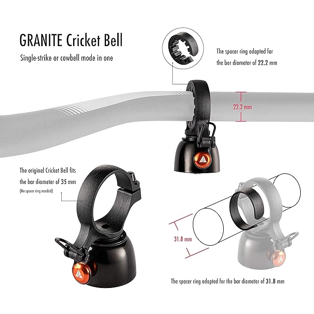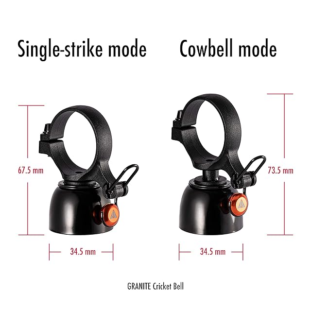 Granite(グラナイト) クリケット(Cricket)マウンテン自転車ベル - シングルストライクモードと連続カウベルモード付き、22.2mmから35mmハンドルバー用バイクベル