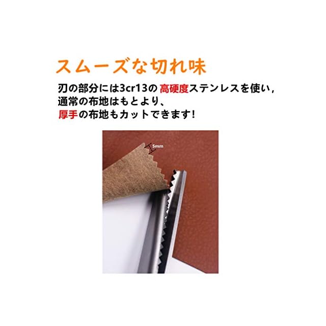 【用途】絹・綿からナイロン、革、ニット、反物まで、多種多様な布地にご利用いただけます。ビニール袋やコットンペーパーのカットにも便利。ギザギザの切り口がほつれ止めに最適です。
