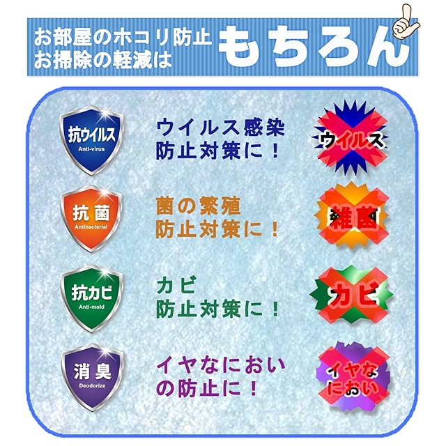 「ウイルス・雑菌・カビ」の繁殖を抑制し、安心で清潔なお部屋の空気をお届けします。「ホコリ」も防止してお掃除軽減!