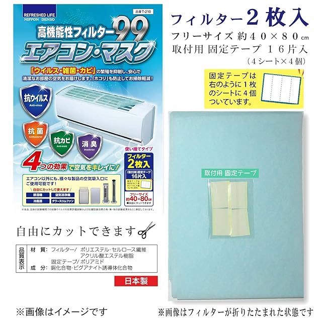 ㈱日本デンソー エアコンフィルター 《抗ウイルス》《抗菌》《抗カビ》《消臭》 高機能性フィルター99 エアコン・マスク 約40×80cm 2枚入 日本製 T-210