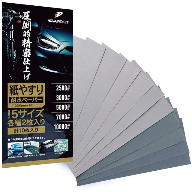 Waardist 【整備士が監修】 10000番 ~ 2500番 紙やすり 紙ヤスリ 耐水ペーパー セット サンドペーパー かみやすり 5種10枚 極細目