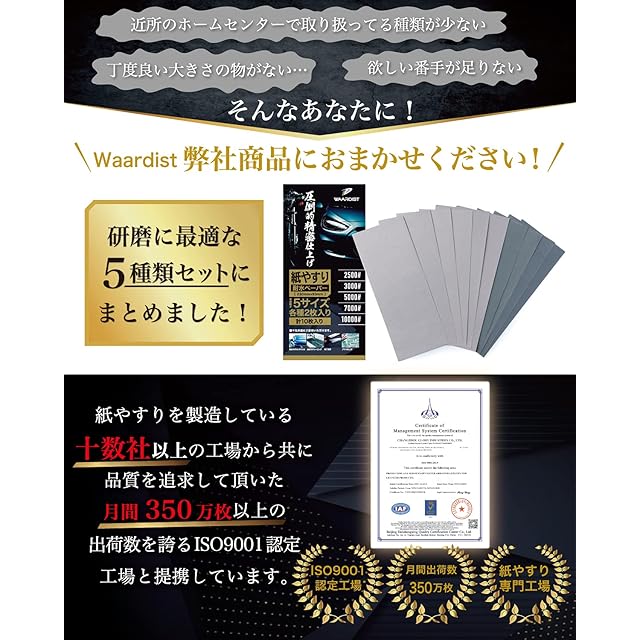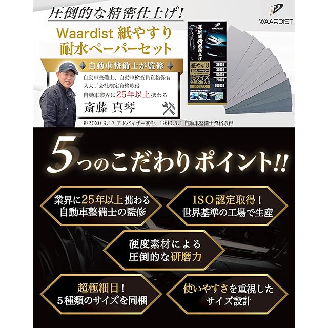 商品名:Waardist 【整備士が監修】 10000番 ~ 2500番 紙やすり 紙ヤスリ 耐水ペーパー セット サンドペーパー かみやすり 5種10枚 極細目