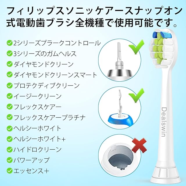 商品名:Dealswin フィリップス ソニッケアー 対応 替えブラシ 互換ブラシ 歯垢除去 レギュラーサイズ 8本入 ダイヤモンドクリーン イージークリーン プロテクティブクリーン などと互換性あり ホワイト
