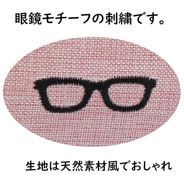 メイガン(Meigan)メガネケース メタル ハード ラウンド コンパクト おしゃれ ファブリック 生地 かわいい ワンポイント 眼鏡刺繍モチーフ メンズ レディース 兼用 ピンク 2235-03