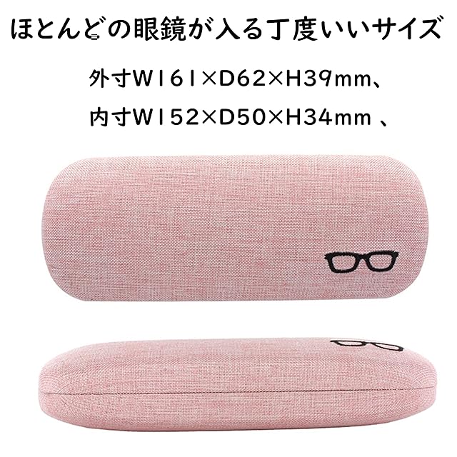 商品名:メイガン(Meigan)メガネケース メタル ハード ラウンド コンパクト おしゃれ ファブリック 生地 かわいい ワンポイント 眼鏡刺繍モチーフ メンズ レディース 兼用 ピンク 2235-03