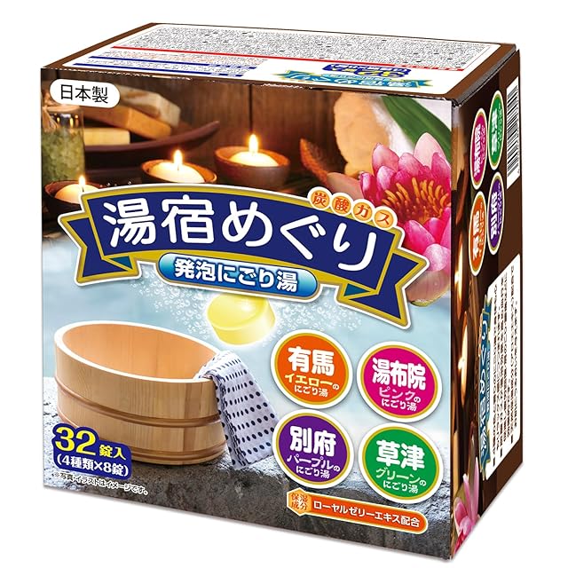 商品名:ライオンケミカル 発泡にごり湯 炭酸 入浴剤 湯宿めぐり4つの香り詰め合わせ 32錠