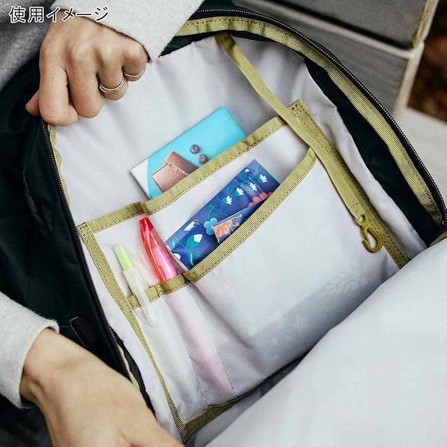 【豊富な収納スペース】メインコンパートメントに加えフロントには複数のポケット、サイドにはドリンク等を入れるメッシュポケットが装備されています。メインコンパートメント内もPC・タブレット収納や、小物整理に便利なキーフック×1 ペンホルダー×2 オープンポケット×2が付いているためバッグ内も煩雑になりません。