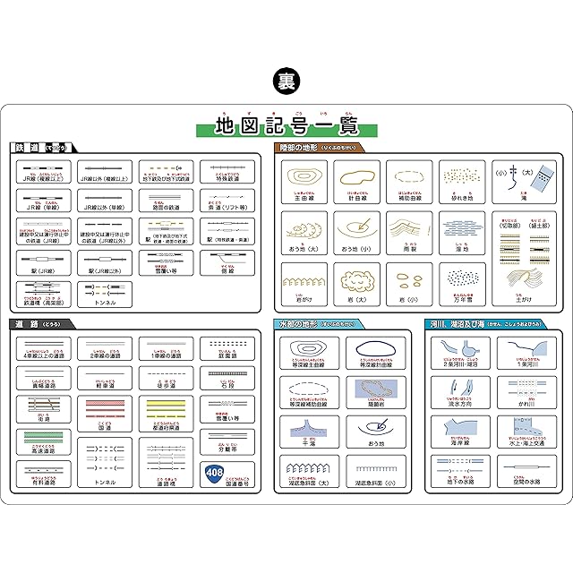 数多くある地図記号をジャンル別に分かりやすく分類しました。また、「地図記号の豆知識と由来」では興味を持って楽しく覚えやすい工夫をしてあります。