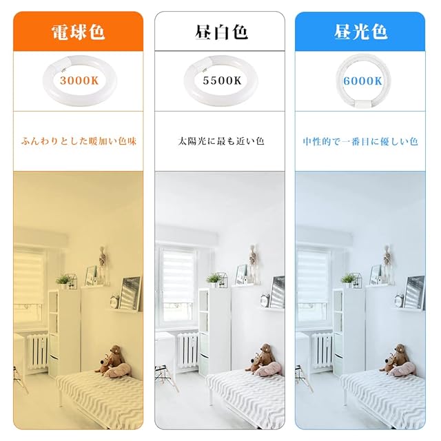 【商品仕様】LED丸型蛍光灯 、点灯方式:グロー式、口金:G10q 、サイズ :φ 30 × 205mm (20形)、φ 30 × 225mm (30形)、φ 30 × 299mm(32形)、φ 30 × 375mm(40形) 、色温度:昼光色 6000K、昼白色 5500K、電球色 3000K 、消費電力:約9W(20形)、10W(30形)、14W(32形) 、18W(40形) 、電圧:AC100V、 定格周波数:50/60Hz 、全光束、20形:1125LM (昼光色) 、945LM (昼白色)、920LM (電球色)、30形: 1250LM(昼光色)、1050LM(昼白色) 、1000LM (電球色)、32形:1750LM (昼光色)、1470LM(昼白色) 、1400LM(電球色)、40形:2250LM (昼光色)、1890LM(昼白色) 、1800LM(電球色)、設計寿命:約40000時間