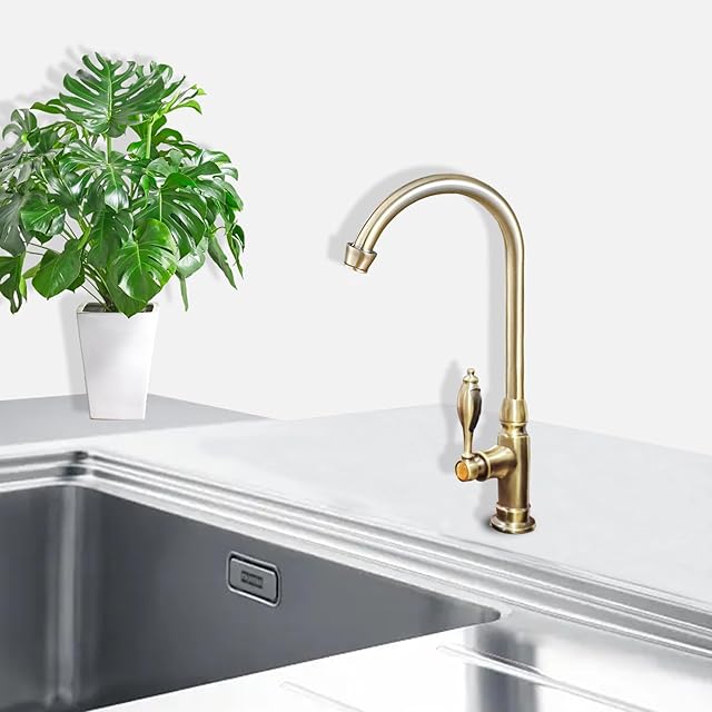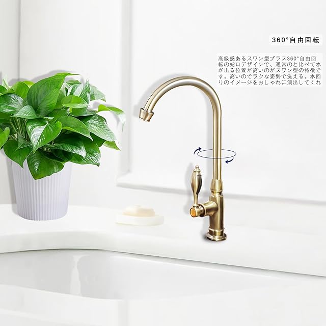 TOKUGAWAMIKA 洗面台用 立水栓 アンティーク 単水栓 360°回転 手洗いボウル 蛇口 トイレ 洗面水栓 洗面ボウル 化粧台 節水 水道栓 (ゴールド)