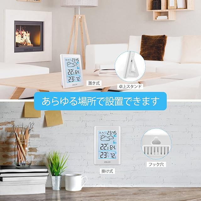 【置き壁掛け両用 コンパクト 品質保障】壁掛け式&卓上置き式2種類、場所を選ばず、使い勝手なデジタル温湿度計です。赤ちゃんや高齢の方が過ごす場所、受験生がいる部屋、オフィスなどいろんな空間の状態を知って、心地よい環境を作り出せます。❤【暖かいサポートと品質】ご購入日から一年間の品質が承諾します、初期不良品に対して返品や返金することが対応します。ご使用中に何か質問がございましたら、メールで気軽に弊店のサポートにお問い合わせてください、24時間以内で返信いたします。