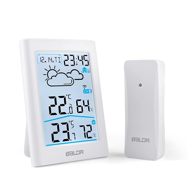 温湿度計 室内 室外 デジタル ワイヤレス 温度計 湿度計 外気温湿度計 高精度 天気予報 LCD大画面 バックライト 最高最低温湿度 温度湿度傾向図 華氏/摂氏表示 置き掛け両用 コンパクト 一つセンサー付き 乾燥対策 熱中症 赤ちゃん 年寄り 体調健康管理 アラーム&スヌーズ おしゃれ 日本語説明書