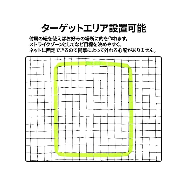 ⚽付属の紐を使えばお好みの場所に的を作れます。ストライクゾーンとしてなど目標を決めやすく、ネットに固定できるので衝撃によって外れる心配がありません。