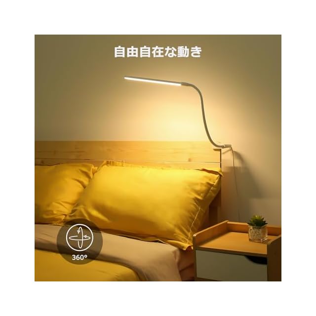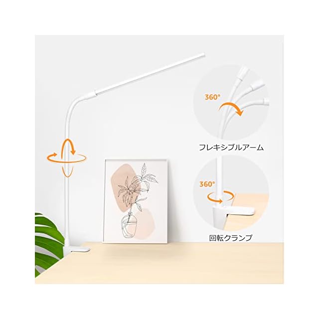 【フレキシブルアーム・広い照射面積】自由に動かせるアームと回転クランプを採用しながら、グランプライトを360度広範囲で自由自在に動かせます。任意の角度に調整して、デスク上を照らすLEDライトの光を最適化になります。勉強、読書、ペインティングなどに細かい作業も安心です。