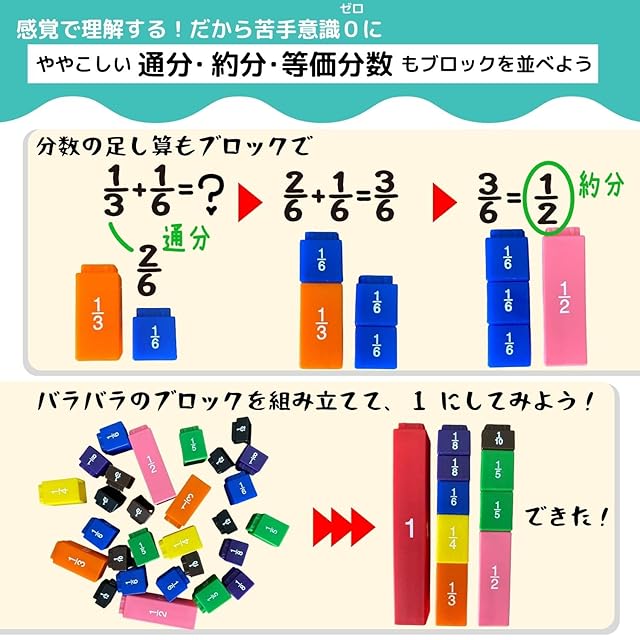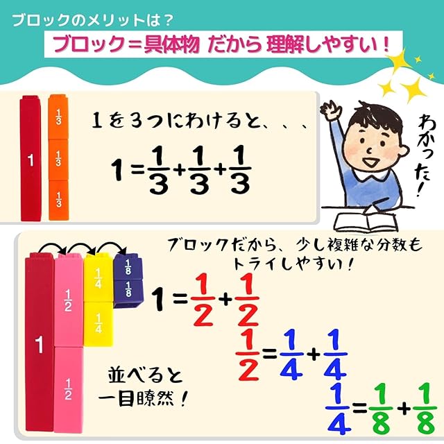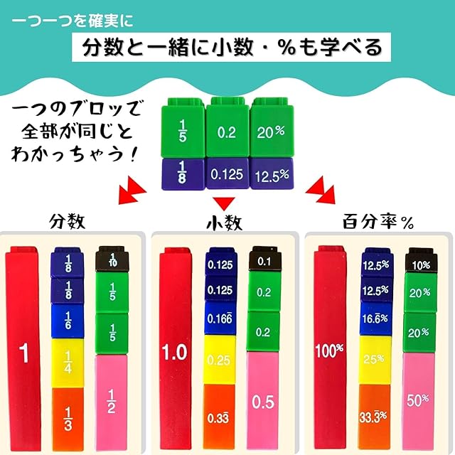 Apricity【 算数ブロック セット 】 分数 小数 百分率% 理解を深めるステップアップカード & 保護者用説明書付 算数教材