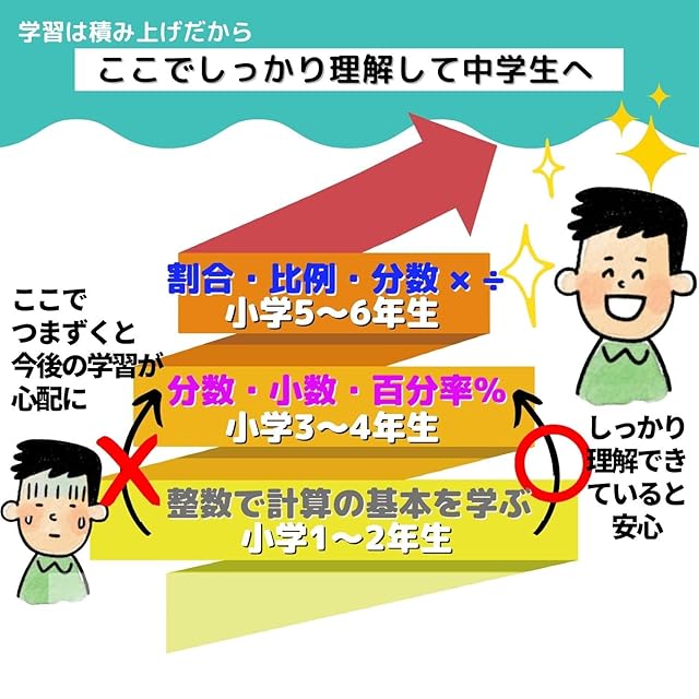 【 苦手意識を持つ前に 】 小学校高学年の算数で苦手な単元トップ3に「割合」があげられています。分数・小数・百分率(%)は、割合の中でも基礎となる部分です。つまずいたままにしてしまうとその後の学習に大きく影響します。苦手意識を持たないためにも、ご家庭でのフォローに分数ブロックをお役立てください。