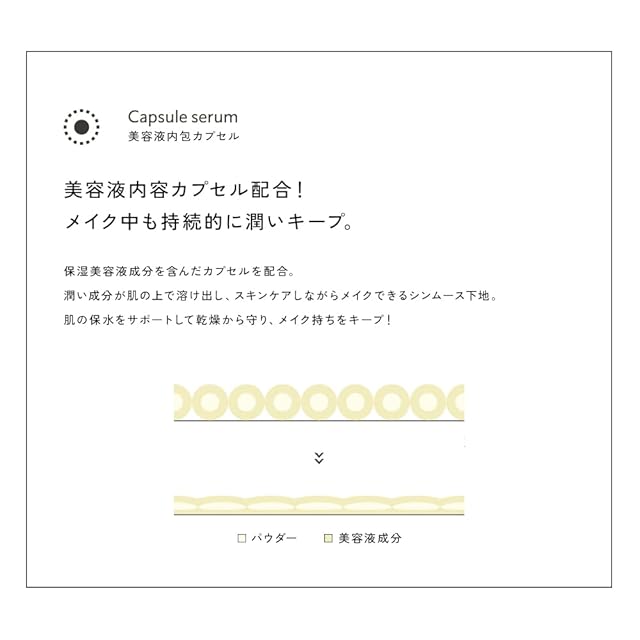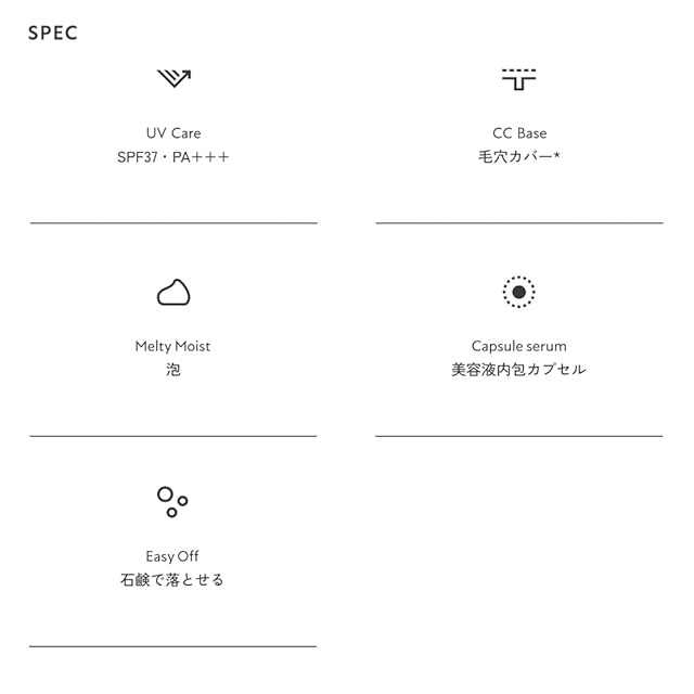 SPF37・PA+++ 肌にスーッと溶け込むように素早く馴染んで密着する、新感触の泡状下地。ふわふわの泡が瞬時*に肌にフィットして、毛穴や肌の凹凸、色ムラを補正*するCCベース。化粧崩れやテカリを防ぎ、化粧のノリとモチをアップ。泡状だから実現した厚塗り感なく軽いつけ心地で、自然にカバーしてトーンアップ*。内側から光輝くような、みずみずしく艶やかな美肌へと導きます。なりたい肌に合わせて選べる2色展開。ブルベ肌におすすめのナチュラルベージュと、イエベ肌におすすめのバナナオークル。 * メイク効果による