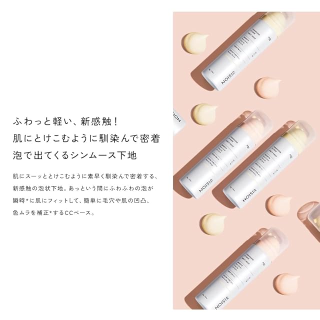 肌にスーッと溶け込むように素早く馴染んで密着する、新感触の泡状下地。ふわふわの泡が瞬時*に肌にフィットして、毛穴や肌の凹凸、色ムラを補正するCCベース。