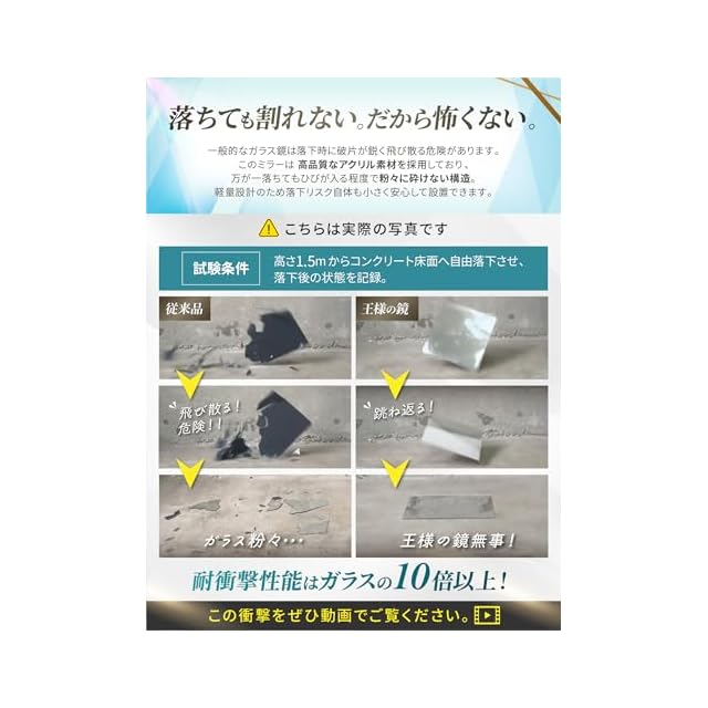 ✅【アクリルミラーで怪我ゼロへ】飛散防止、軽量設計の為、万が一落下しても鏡に比べ怪我のリスクが低下します。地震など災害時にも割れる心配が無く、小さなお子様やペットの安全対策としてもオススメです。