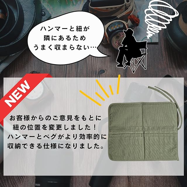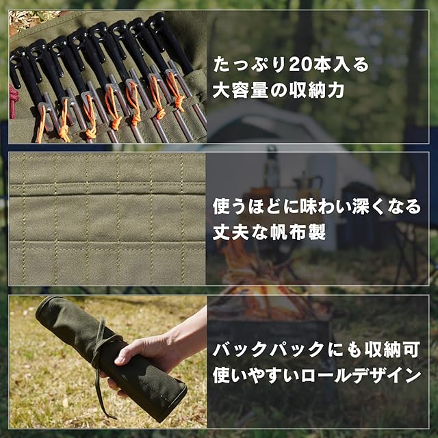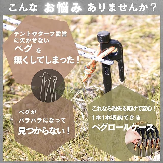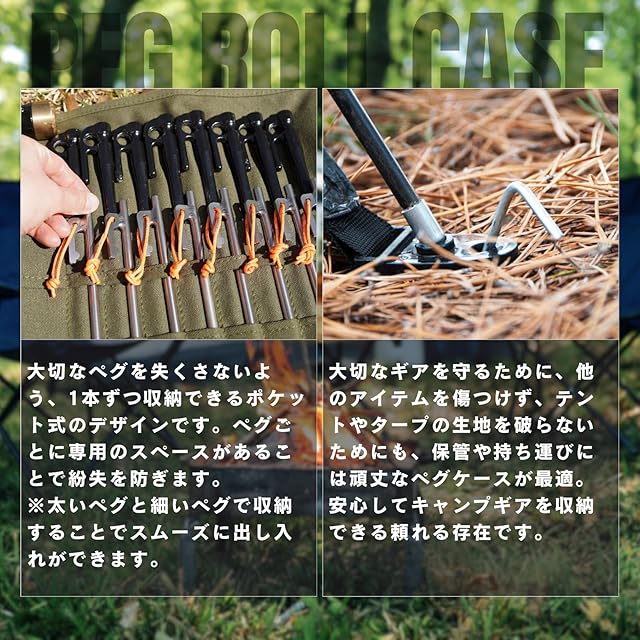 ✅ペグを1本ずつ収納できる。帆布製ペグロールケースです。大切なペグの紛失防止に繋がります。