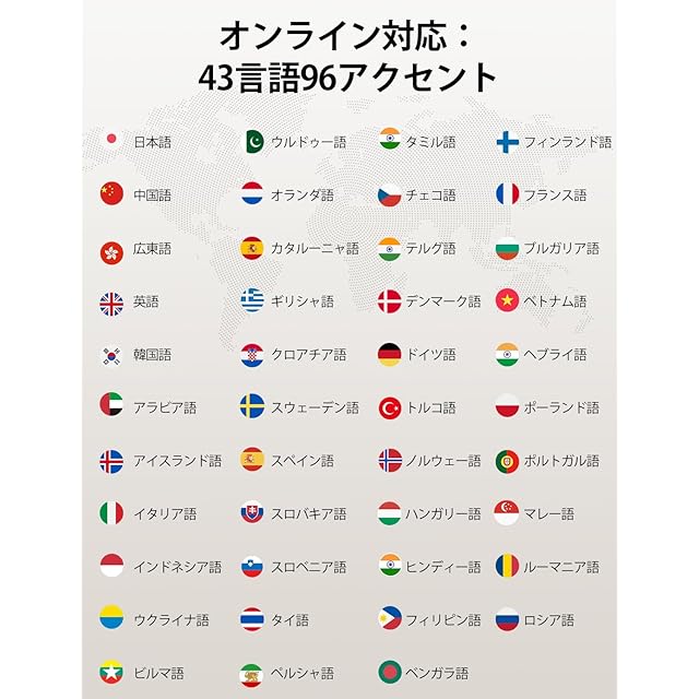 【43種96言語対応&13ペアオフライン翻訳】 オフラインモデルですが、オフライン言語パックと交換できるFishカードは含まれます。世界中42カ国95アクセントの使用をサポートしています。日本国内での使用はもちろん、海外旅行や出張、留学、語学学習をされる方々にもご愛用頂いています。インターネットがない場所でも使える。オフライン対応言語:日本語⇔(英語、中国語)、(英語、中国語)⇄(韓国語、フランス語、ドイツ語、スペイン語、ロシア語)に対応