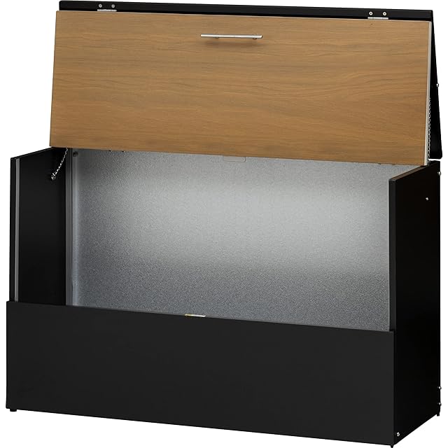 ナチュラルモダンテイストでおしゃれなデザインの物置。省スペースでも設置でき、灯油用ポリタンクも収まるダストボックスタイプ。リアルな木目のプリントで、優れた耐久性を持ちながら自然な天然木の風合いを楽しめます。表面はアクリル樹脂焼付塗装を施しており、紫外線に強くキズが付けにくい。省スペースでも設置できる。取っ手を上に持ち上げると前面と天板が連動して開きます。開口部が大きく省スペースでも出し入れが簡単。アジャスターが付いてるため、ガタツキを調整可能。軒下や玄関まわりに。バルコニーに。マンションに。