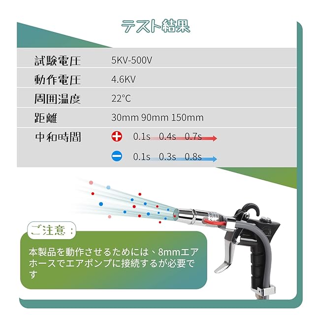 【高性能】30mmの距離で、わずか0.1sで静電気除去できます。空気圧式スイッチトリガー、人間工学に基づき、より快適に使用できるようになりました。高電圧入力コネクタをアップグレードし、より安全で安定した使用が可能になります。