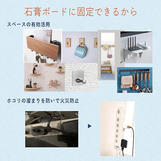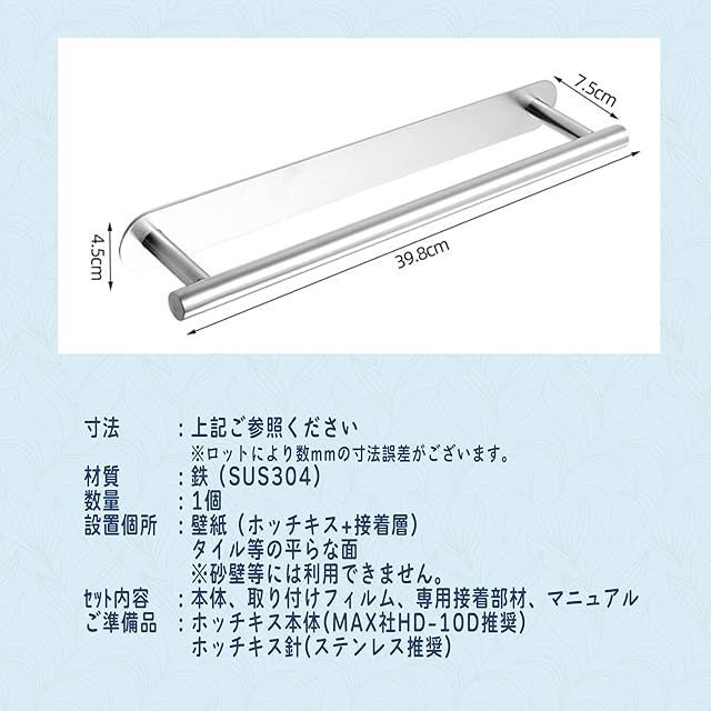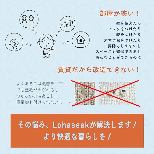 【設置場所】石膏ボード上の壁紙、タイル等の平らな場所。砂壁には取り付けられません。