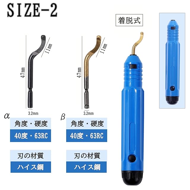 【多素材に対応する40°標準ブレード α】 プラスチック・木材・アルミニウム・鋼など、幅広い素材に対応したハイス鋼製の汎用ブレードです。日常的な面取り作業に適したバランスの良い切れ味で、補助ブレードとして高い実用性を発揮します。