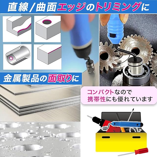 【作業時間を大幅に短縮】 面倒な手作業も、クルクルと回すだけで短時間で完了。時間をかけての面取り作業が不要になり、作業効率が格段に向上します。工具セットに1本あるだけで、現場でのバリ取りが驚くほどスムーズになります。