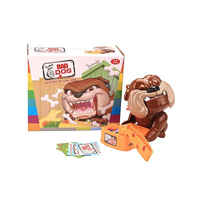 遊び方:カードをめくり指示されたとおりにブルドックを起こさないように骨を奪ってください。見つかったら起き上がりワンワンと吠えられます。小さい子は怖がるかも