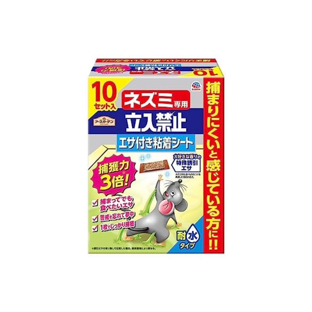アースガーデン ネズミ専用立入禁止 エサ付き粘着シート 10セット入 防水タイプ 害獣対策 鼠 駆除 天井裏 床下 倉庫 玄関 庭 台所